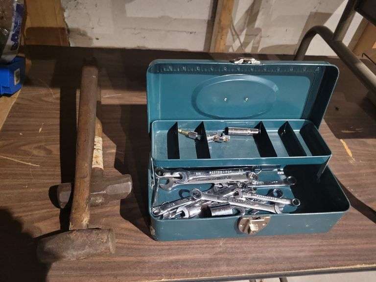 LOT 672 - Tool Box, Wrenches, and Hammers
