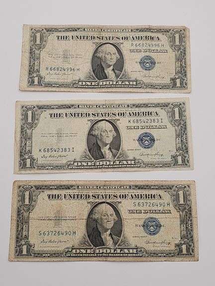 LOT 105 - 3- Blue Seal $1 Silver Certificates, 1935 E