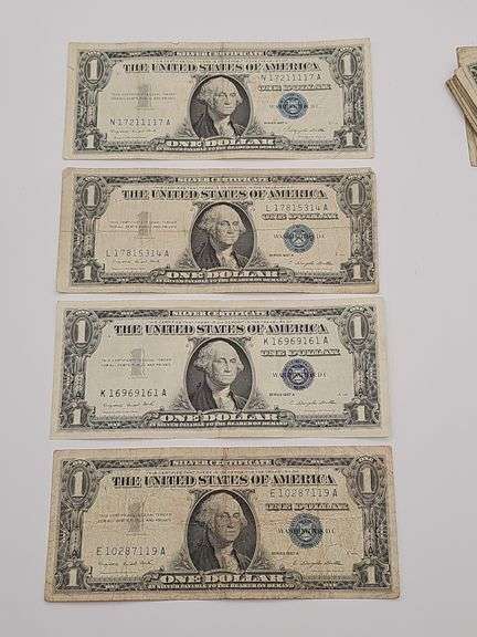 LOT 116 - 4 Blue Seal $1 Silver Certificates 1957 A,