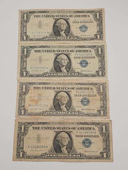 LOT 166 - 4 Blue Seal 1957 Silver Certificates