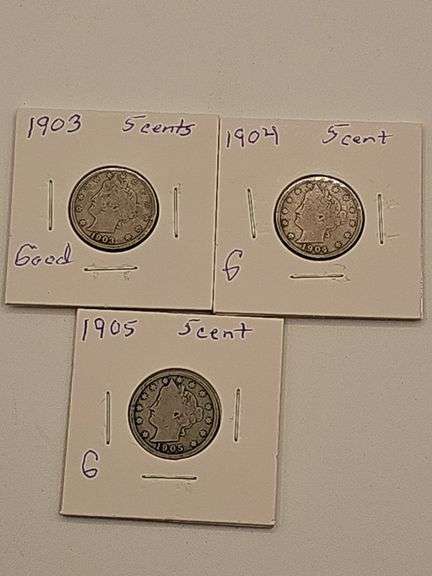 LOT 221 - 3 V Nickels 1903-1905