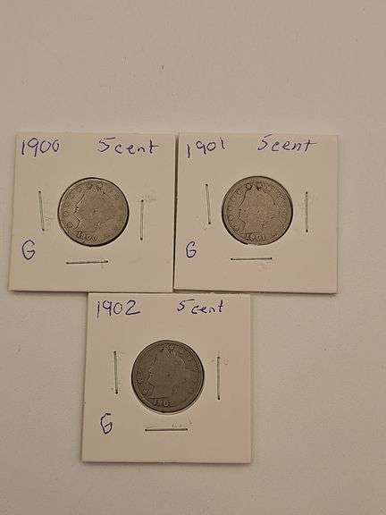 LOT 222 - 3 V Nickels 1900-1902