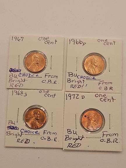 LOT 255 - 1966, 1967, 1968S & 1972D Bright Red OBR Pennies