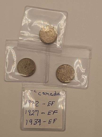 LOT 275 - 1922, 1927, 1934 Canadian 5 Cent Coins