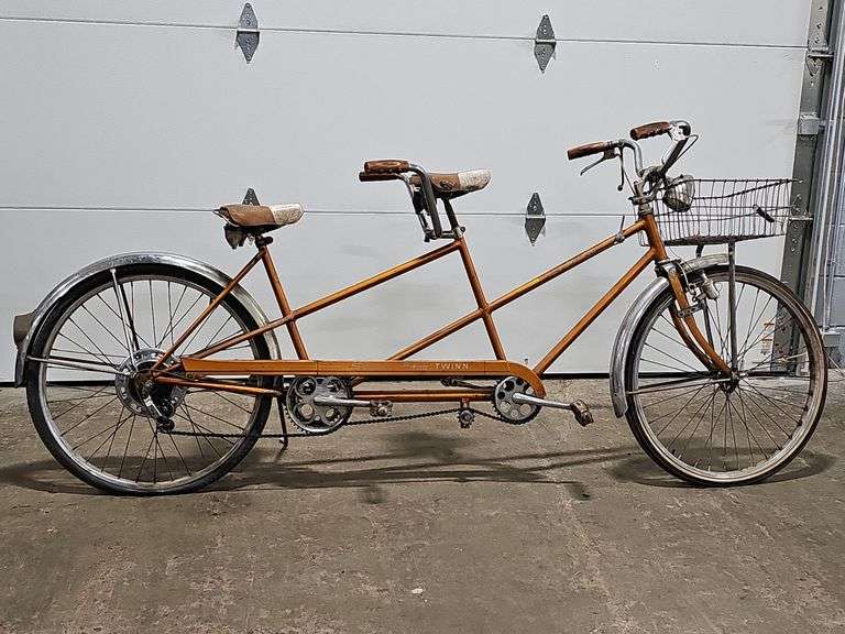 LOT 21 - 1960's Schwinn De Luxe Twin Tandem, Coppertone, original paint, 5 speed, head badge intact, surface